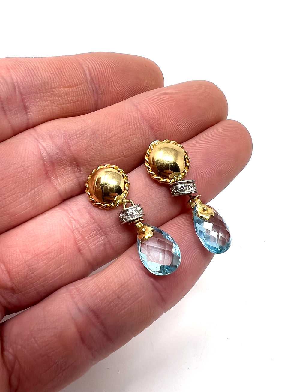 Excellent Vintage Pair Of 18ct Yellow Gold Topaz & Diamond Dropper Earrings